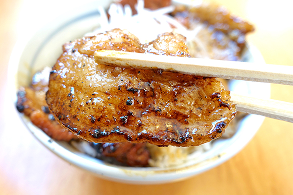 丼の中で豚肉と炭とたれの香りがあいまって、限りなく香ばしく焼きあがるのが「豚丼」です。